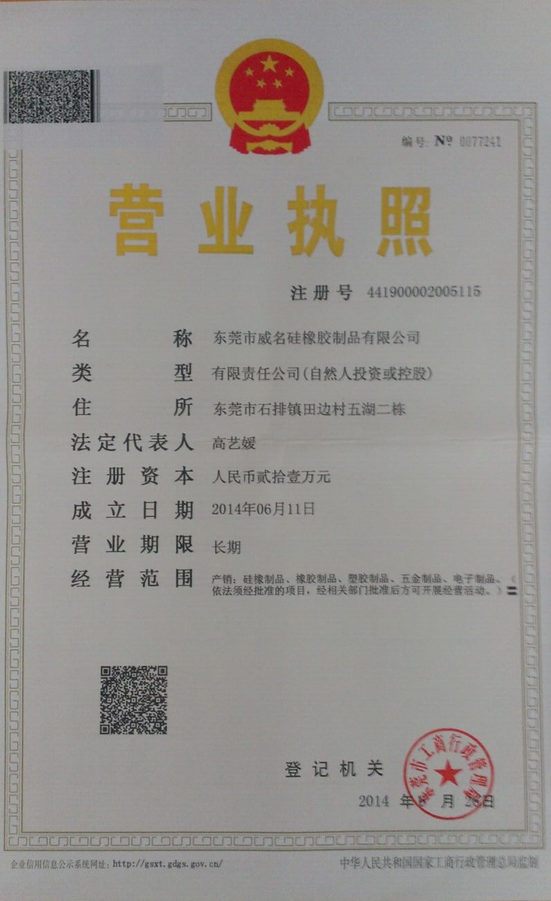 • 威名營業執照